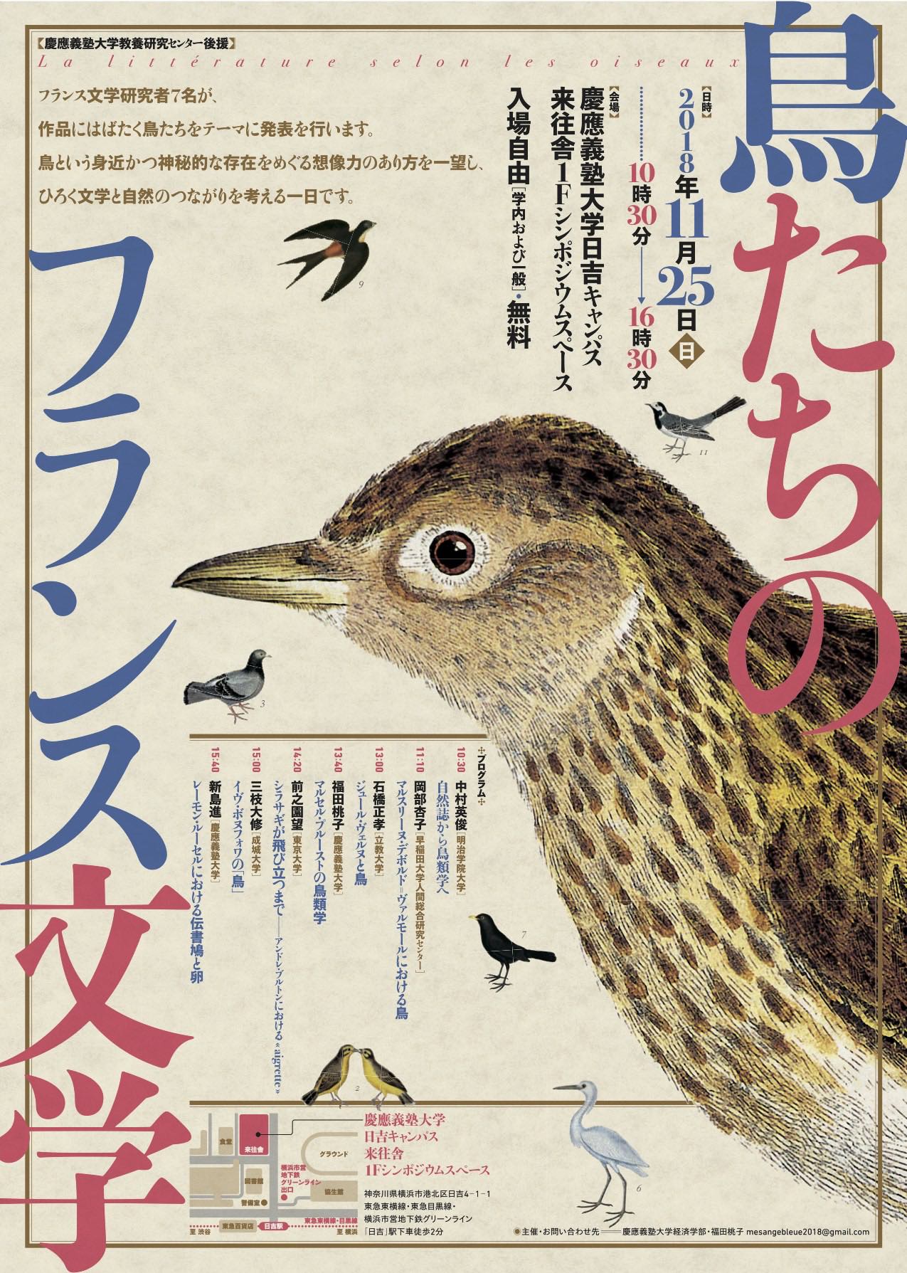 フランス文学研究者7名が、作品にはばたく鳥たちをテーマに発表を行います。