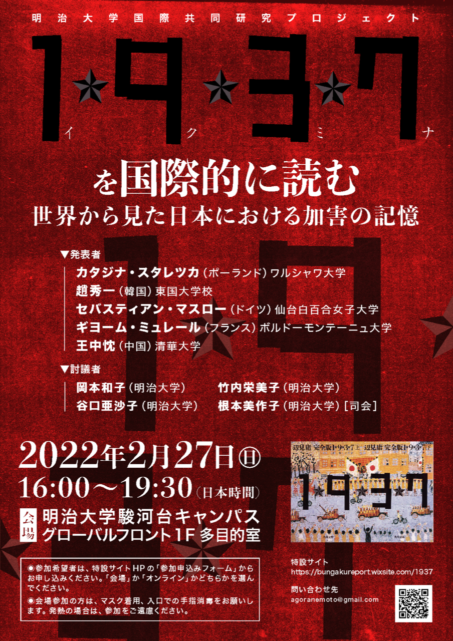 明治大学国際共同プロジェクトでは、2022年2月27日に、国際読書会シンポジウム「辺見庸『1★9★3★7』を国際的に読む ー世界から見た日本における加害の記憶ー」を開催します。